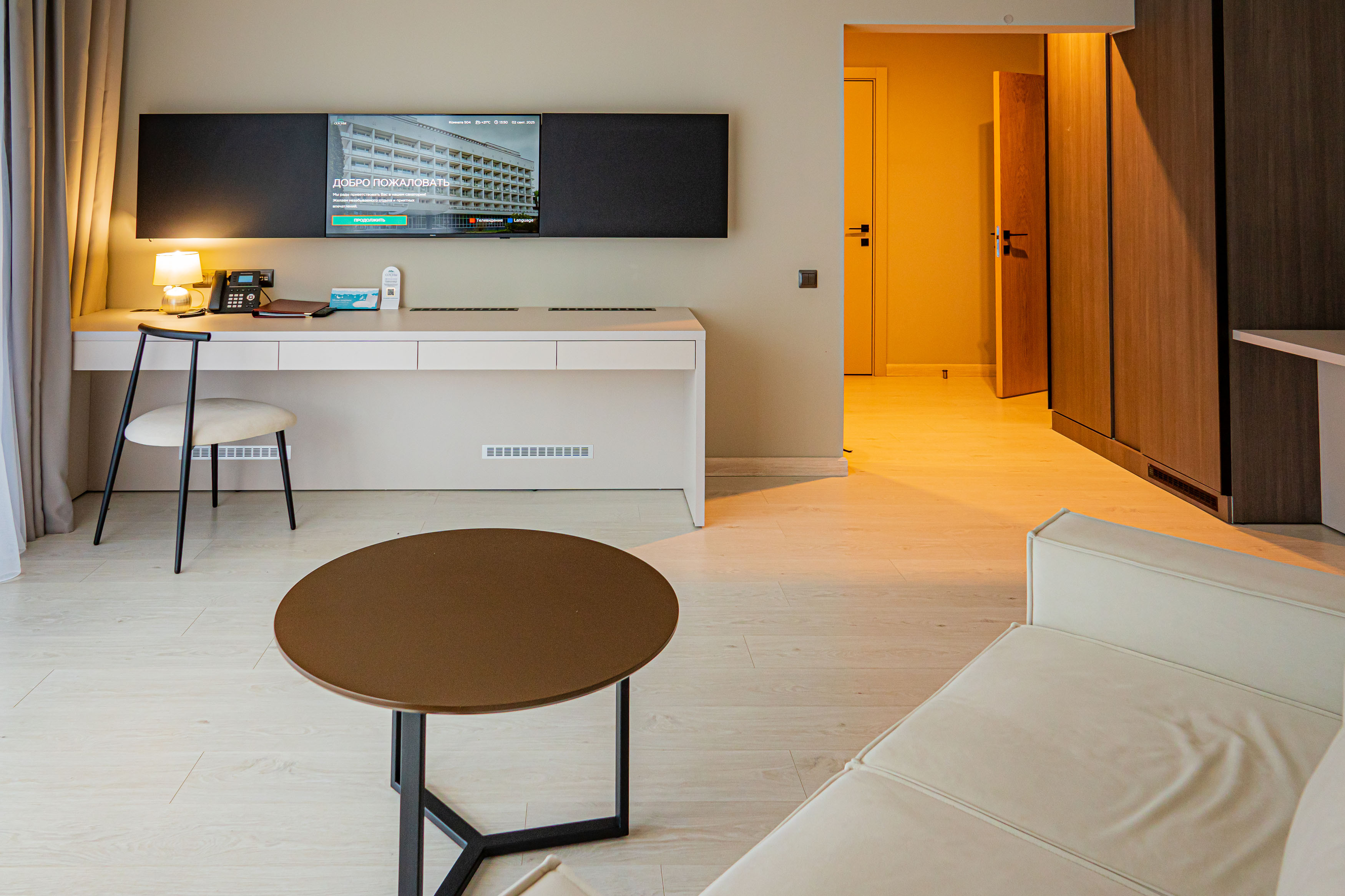 Санаторий «Сосны» — это пространство для полноценного отдыха. Мы предоставляем условия, способствующие расслаблению и восстановлению сил. Номера оформлены в спокойных тонах, обеспечивая гостям максимальный комфорт. Каждый номер оборудован всем необходимым, чтобы каждый мог расслабиться и насладиться отдыхом.