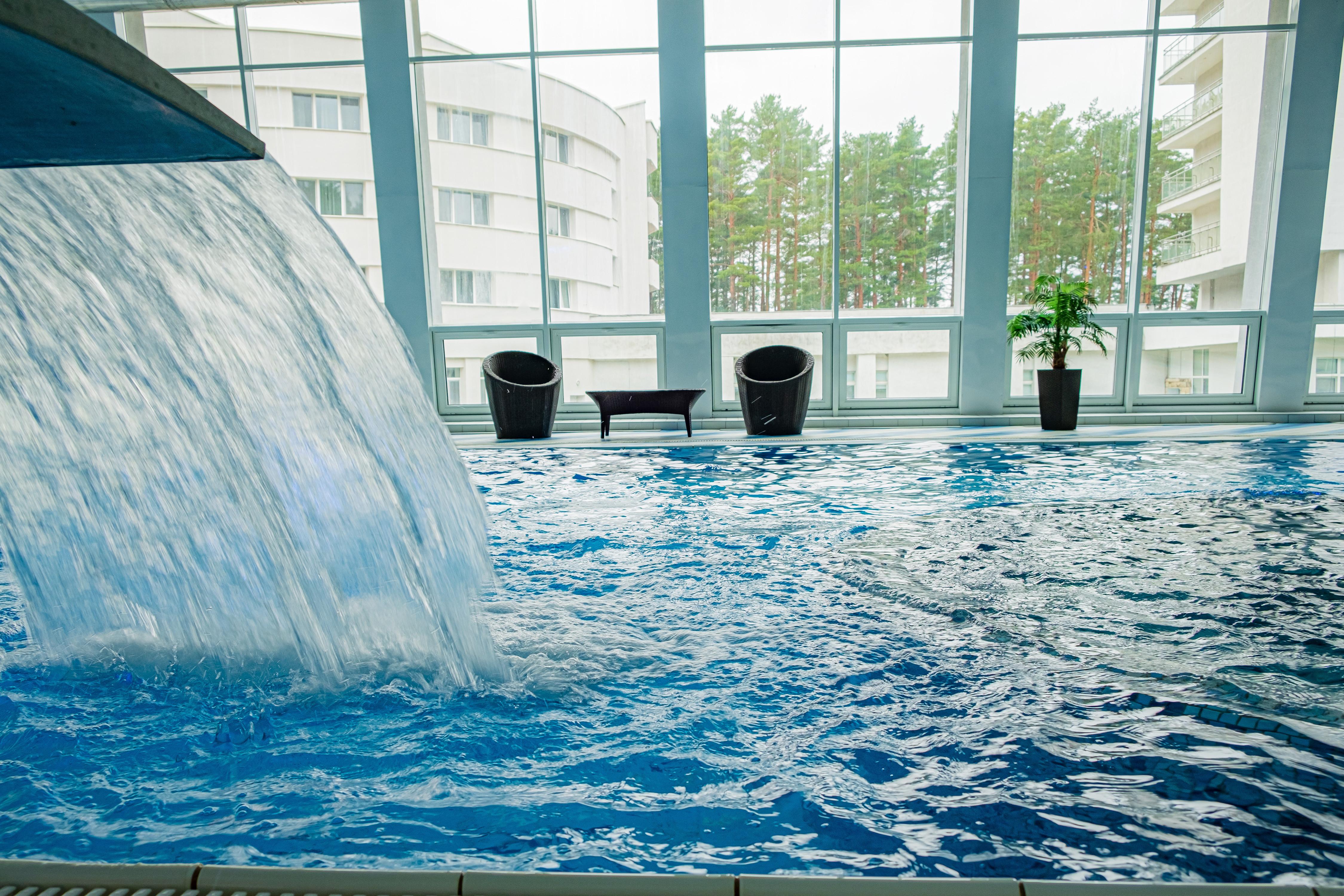 Санаторий «Сосны» предлагает не только медицинские и спа-процедуры, но и разнообразные удобства для активного отдыха. Бассейн доступен для всех гостей, что позволяет наслаждаться плаванием в любое время.